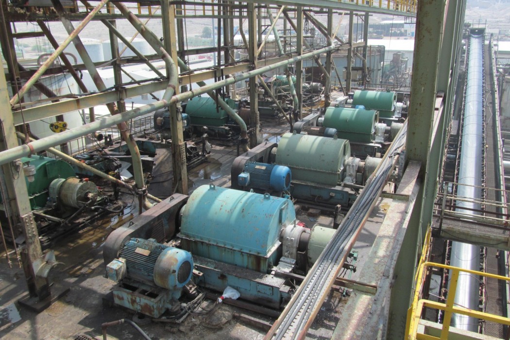 The Carnallite Structure is a 25-meter, five-story-high, open steel-framed structure constructed in the 1980s. An elevated concrete slab cast composite with the steel framing supports several centrifuge machines, which serve as an integral part of the hot leach production line at this potash plant. The equipment, which runs continuously, induces vibration into the supporting slab and sprays hot leach product, which is highly deleterious to both concrete and steel, directly onto the slab.