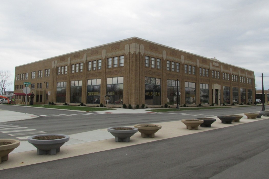 The building currently housing the Auburn Cord Duesenberg Automobile Museum was built in 1930 as the headquarters of the Auburn Automobile Company. The facades consist of light brown brick with ornamental cast stone accents and ornamental brick patterns. The roofing systems consist of combinations of EPDM and gravel-surfaced built-up roofing systems. Decorative plaster finishes exist within the original portions of the building.