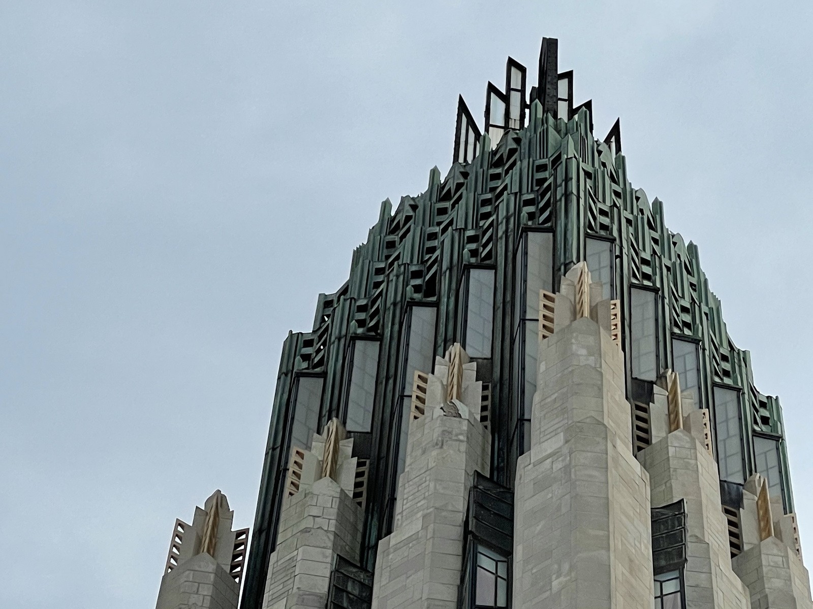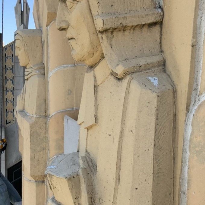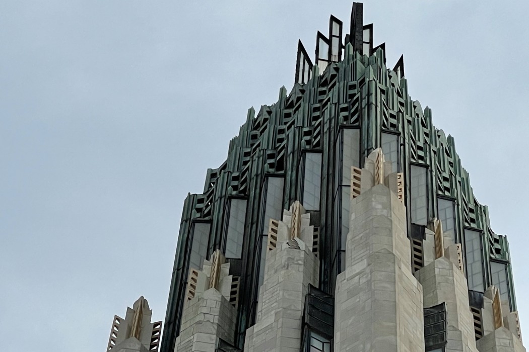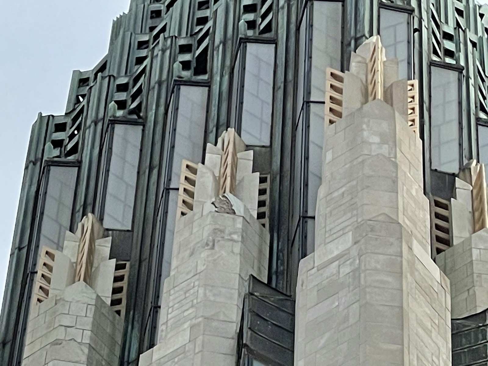WJE performed a limited close-up inspection of the building facades using industrial rope access techniques to review the existing condition and as-built configuration of the tower. The WJE team observed interior moisture exposure and damage, and reviewed the exterior limestone and terra cotta, sheet copper cladding, and window and roof systems.