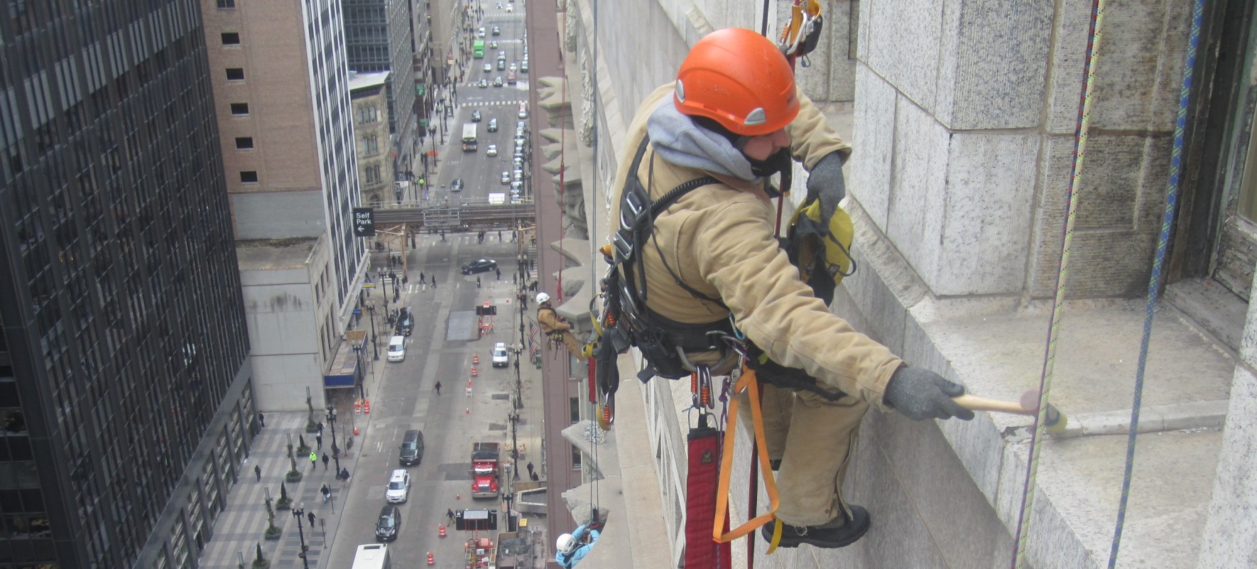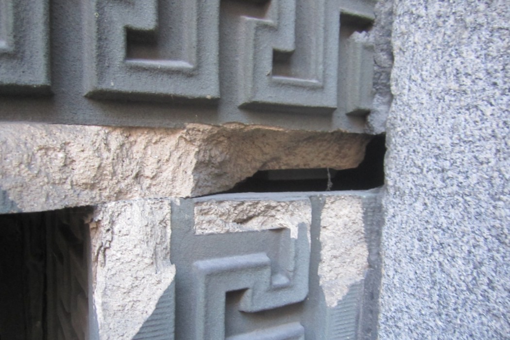 As part of ongoing facade maintenance program, WJE performed an investigation to evaluate the existing conditions and causes of observed distress on the exterior terra cotta, granite, and brick masonry facade areas.
