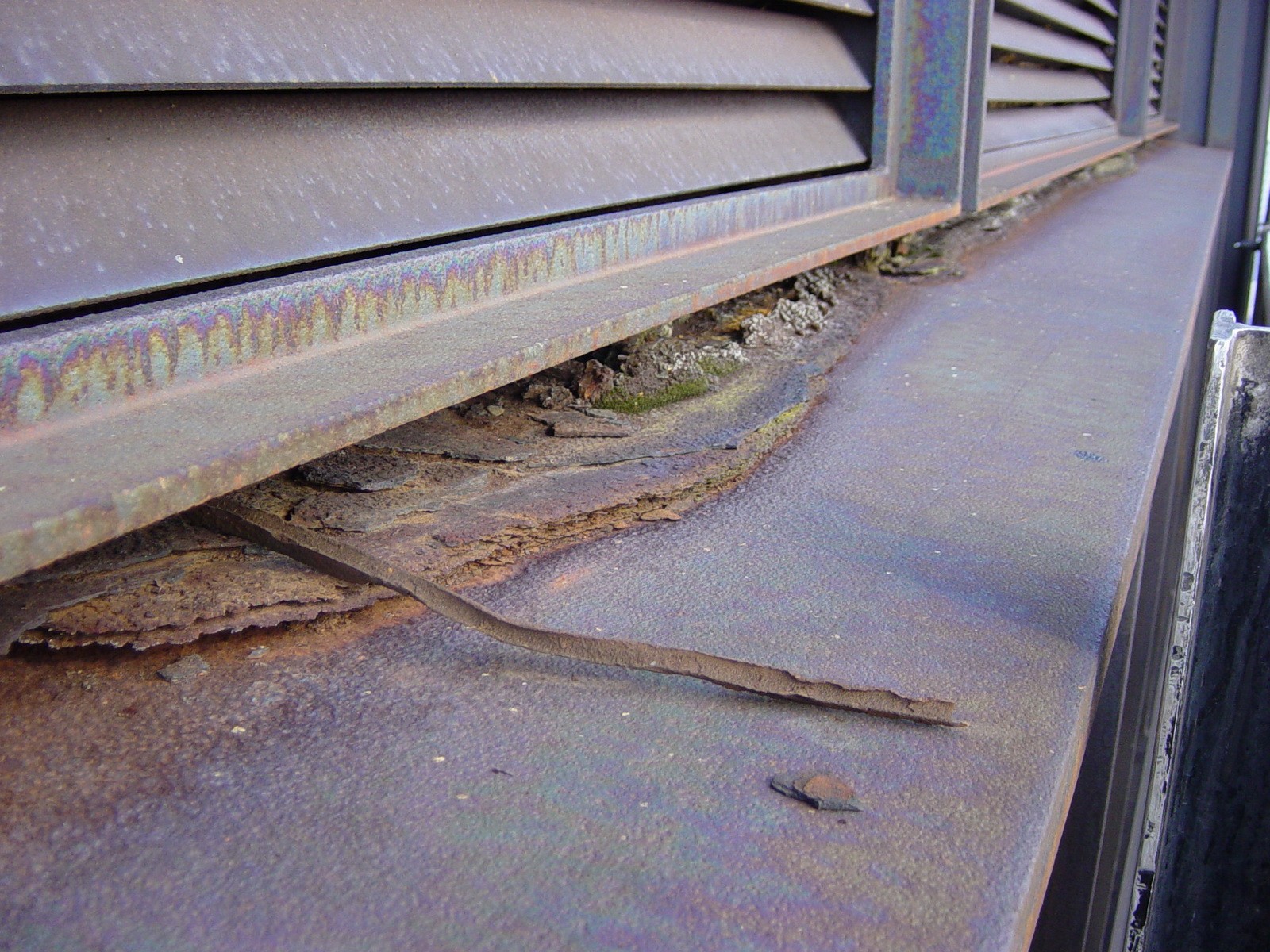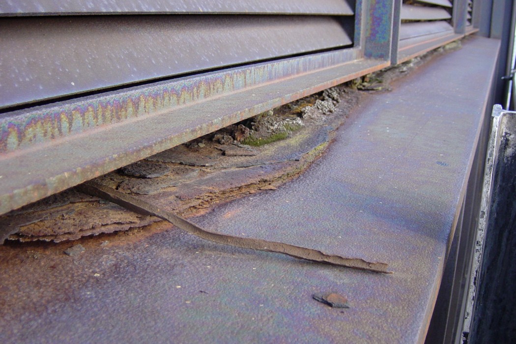 Weathering steel was introduced to the building market in the 1950s as a maintenance-free cladding. Corrosion of the weathering steel panels has since been found to occur unabated when the surface of the steel is not allowed to dry out. Over the years, the building's large annealed glass window panels experienced breakage. Thermal loads and/or metal to glass contact were also suspected as possible causes. WJE was retained to determine the cause of the glass failures and to provide repair recommendations to prevent further deterioration.