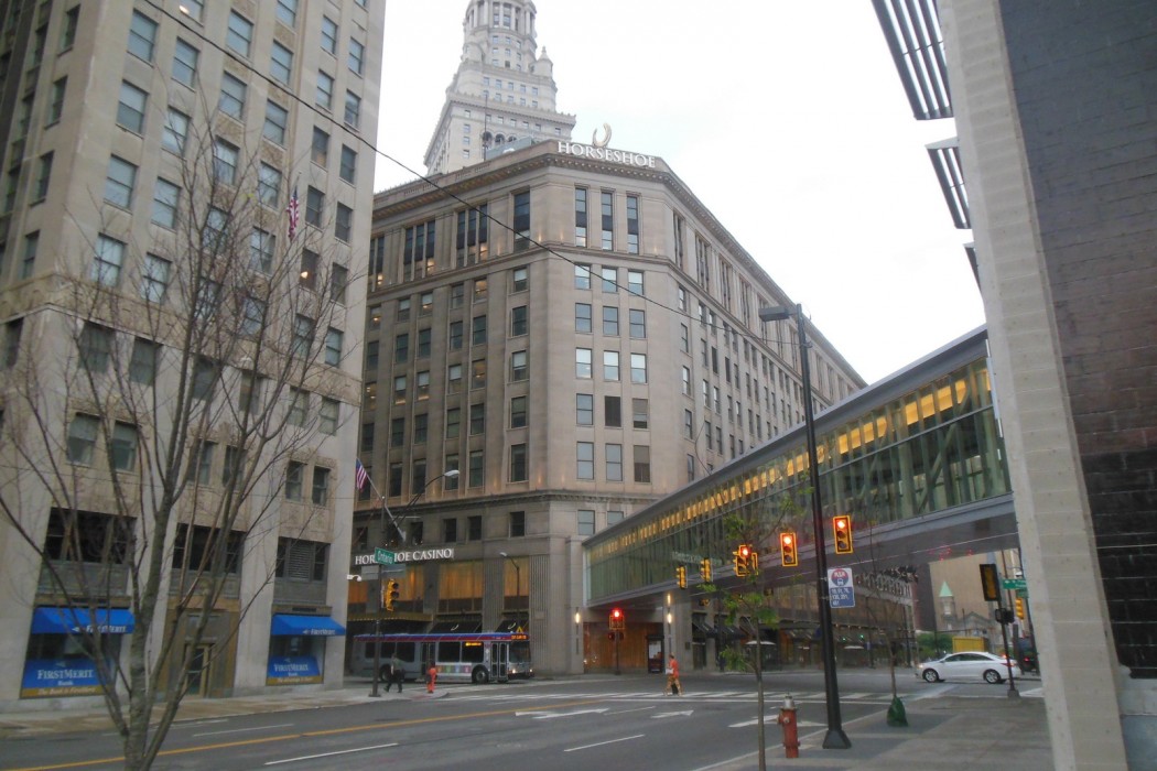 The Higbee Building was constructed in 1931 as part of the now Tower City Center complex, bordering Public Square in downtown Cleveland. The fourteen-story building has had numerous tenants since its construction and had undergone multiple renovations prior to WJE's involvement. The building facade is clad primarily with limestone panels and ornamental terra cotta and includes punched windows and doors of various vintages and types.