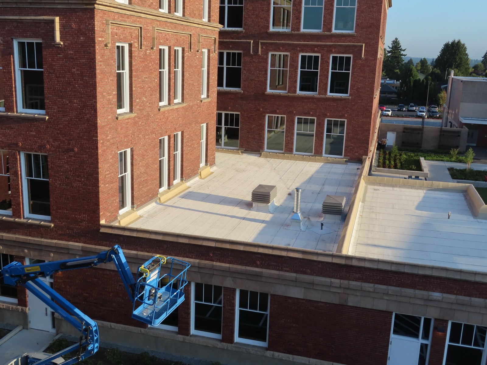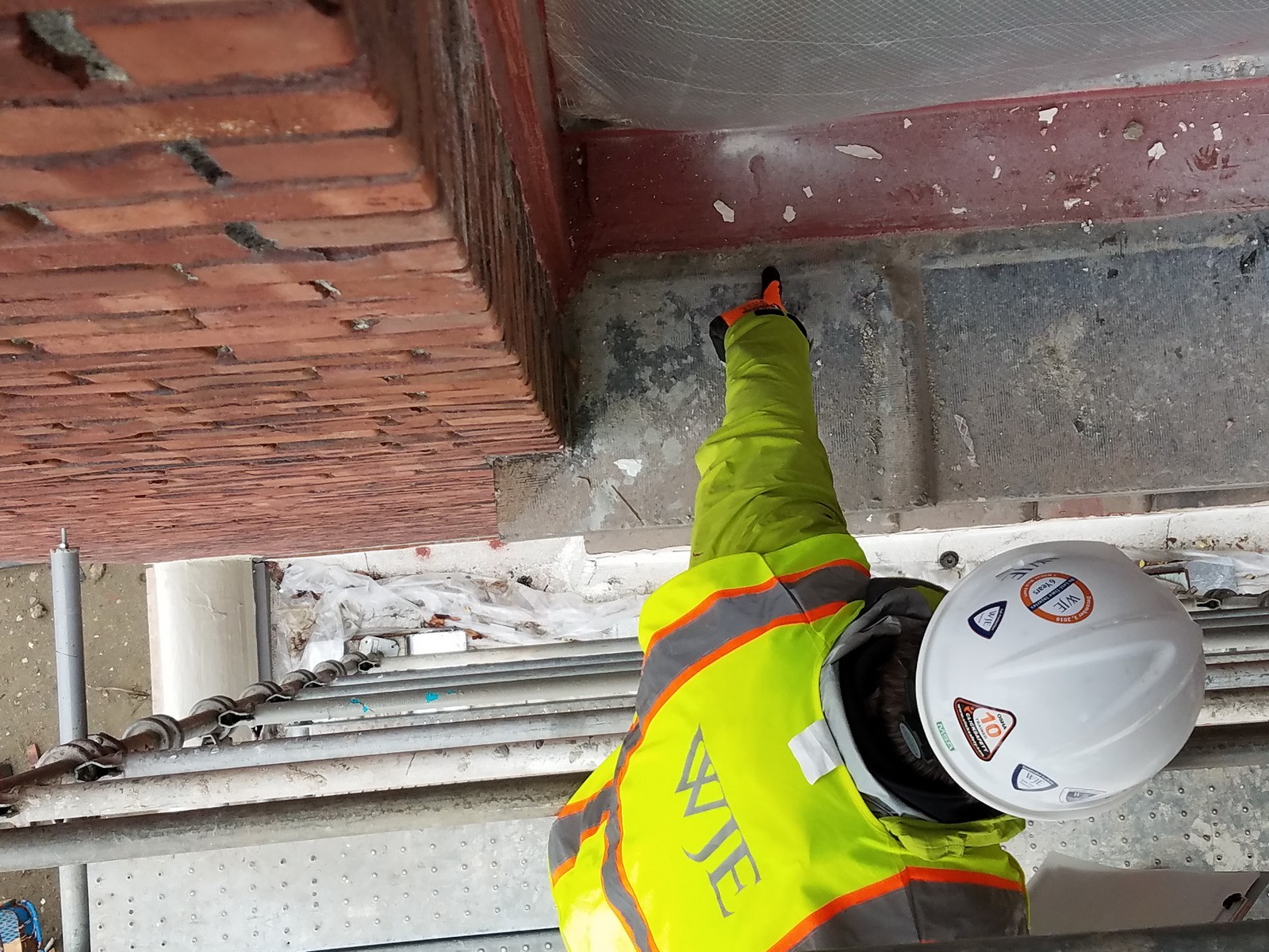 WJE’s hands on and practical approach included up-close evaluation of mock-ups and installed systems and working directly with Bassetti Architects and the general contractor, Lydig Construction, to overcome the challenges of transitioning modern flashings and weather resistive barriers into existing historic materials. When the construction team found the historic brick and terra cotta substrate at window openings too rough and irregular to accept the specified stainless steel and self-adhered membrane flashing, WJE worked with the contractors and supplier technical representatives to implement a fluid-applied window flashing material that allowed for a seamless transition between new and existing elements.