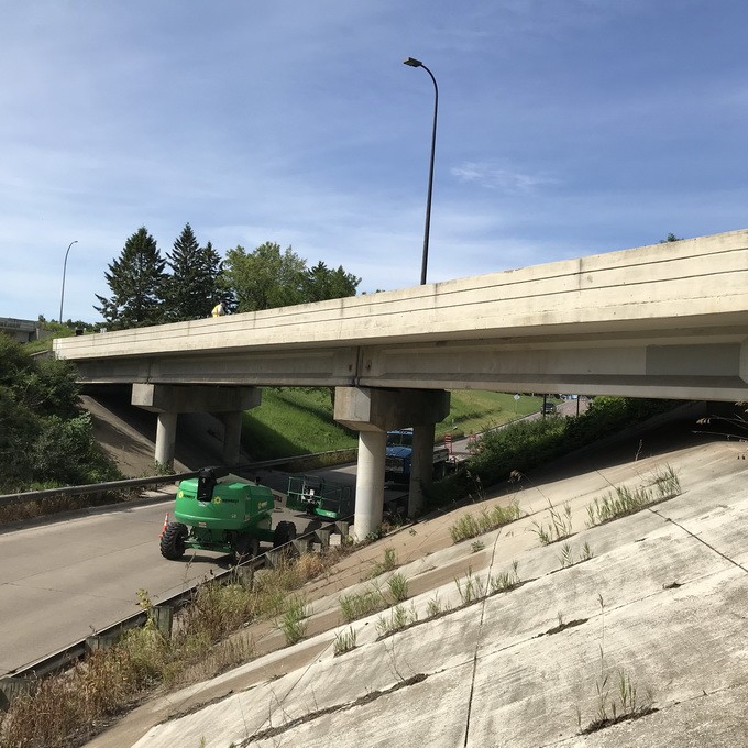 In 2019, the client retained WJE to perform a targeted condition assessment of the bridge substructure (abutments and piers) to evaluate distress identified by the City during routine inspections.  Following review of WJE’s report, in 2020 the City requested WJE perform a condition assessment and service life evaluation of the bridge deck and superstructure.  The intent of these additional services was to consolidate findings from the substructure, superstructure, and deck assessment work to develop maintenance and rehabilitation strategies and estimated costs.