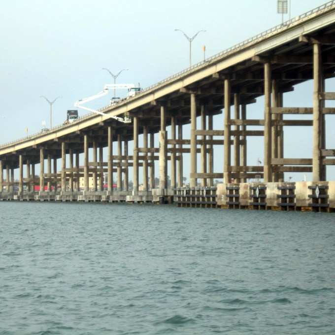 The Queen Isabella Memorial Causeway located along State Highway 100, crosses Laguna Madre and the Gulf Intracoastal Waterway. Designed in 1971 and constructed in 1974, the causeway connects Port Isabel to South Padre Island. It has a total length of 2.4 miles, a width of sixty-eight feet, and a top-of-deck height of seventy-eight feet above mean high tide at the center of the main span.