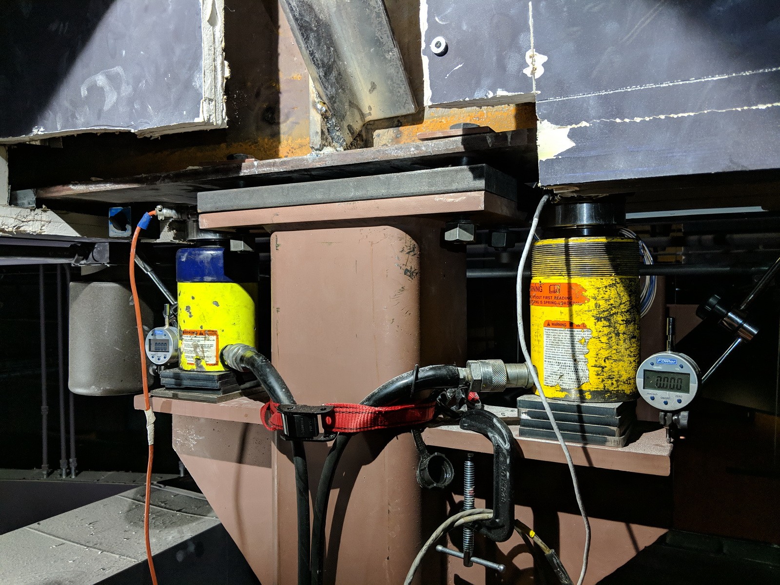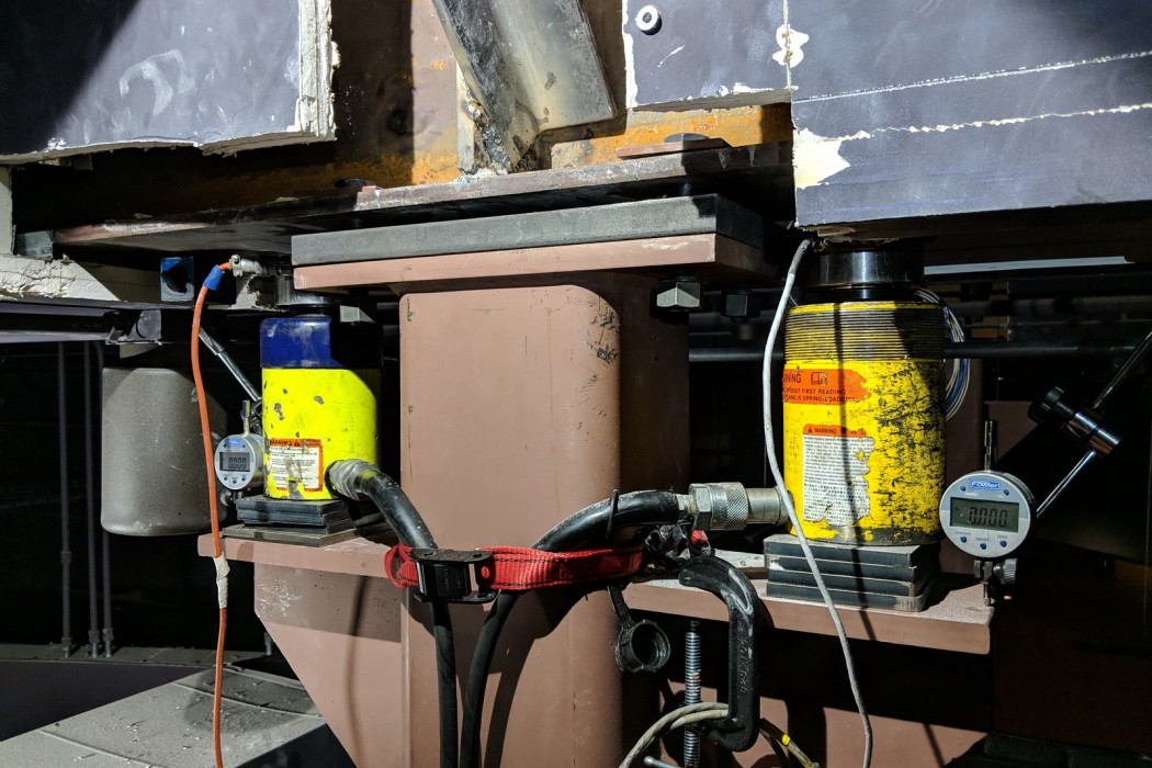 The Field Museum selected the supplemental column strategy, which was subsequently designed by WJE and installed by a contractor. During construction, WJE operated hydraulic rams and digital instrumentation to preload the columns, which ensured tightness of the system and precompression of the existing soils below the new spread footings. Vibration testing by WJE after the retrofit and before opening the gallery to the public showed a dramatic reduction in floor vibrations.